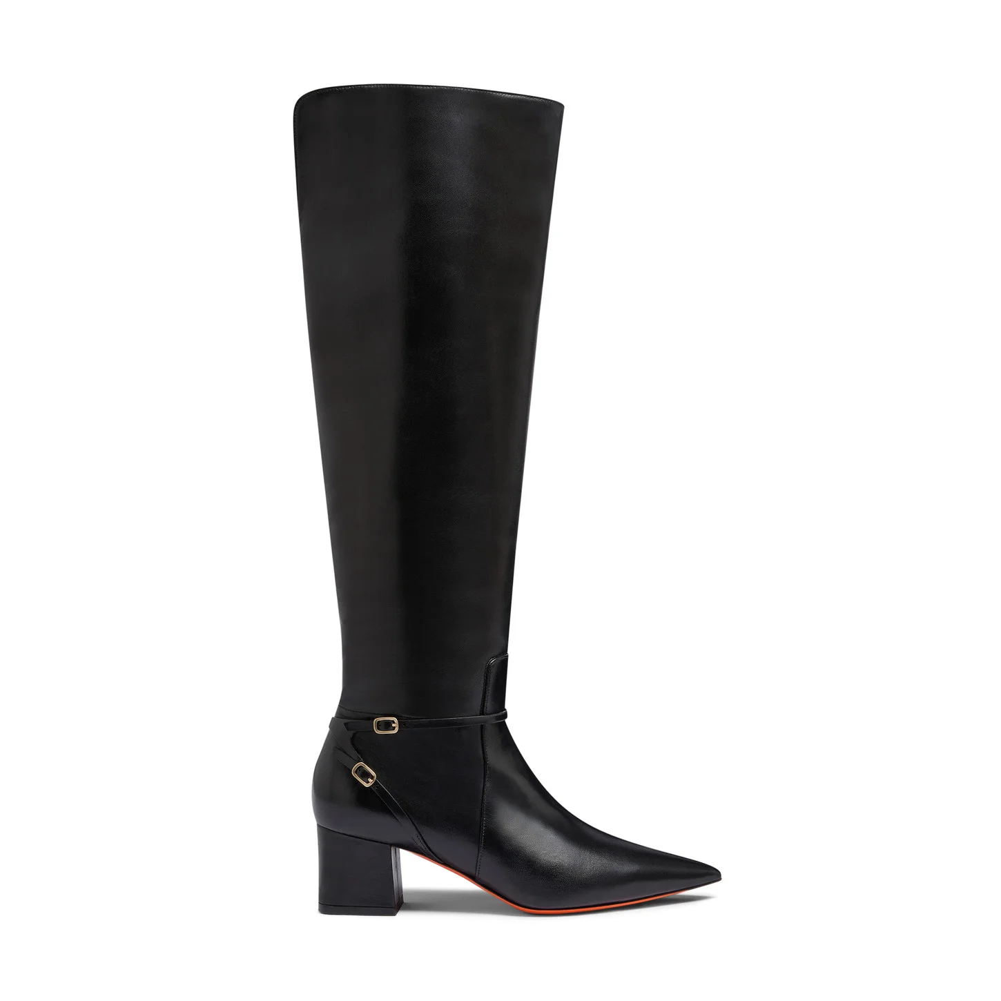 Refined on the eye and versatile at heart, this boot brings Santoni’s artisanal finesse to the everyday. Crafted from fine nappa leather, its silhouette is sleek yet easy to wear, featuring a tapered toe and a robust block heel. Decorative intersecting straps wrap around the ankle as an ode to the enduring elegance of our most iconic style code. Product details Product ID: WSAU71914HI2SXEDN01 - Crafted from nappa leather - Color: black - Decorative buckled ankle straps - Tapered toe - Tubular shaft with back slit - Inner side zip - 5.5 cm block heel - Leather sole with rubber insert - Printed Santoni logo on the insole - Made in Le Marche, Italy