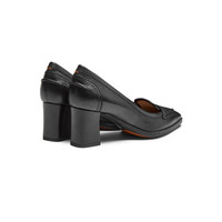 Women's black leather mid-heel pump
