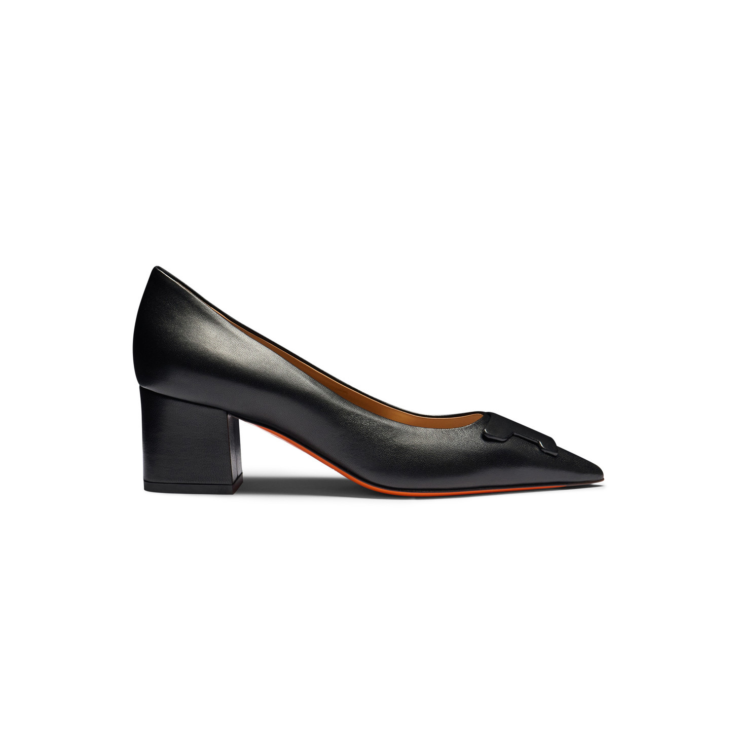 Reimagining an icon of Santoni’s enduring legacy, this version of the Sibille pump combines refined craftsmanship with everyday elegance. Crafted from nappa leather, it features a tonal covered double-buckle detail for a streamlined look that pairs effortlessly with endless looks. Its sleek, tapered toe is balanced out with a robust block heel for unwavering comfort, support and freedom. Product details Product ID: WDAU71821HI2NSZAN01 - Crafted from nappa leather - Color: black - Tapered toe - Double-buckle-inspired detail - 5.5 cm block heel - Leather sole with rubber insert - Printed Santoni logo on the insole - Made in Le Marche, Italy