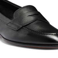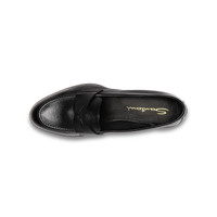 This women’s loafer cements the refined lines of the iconic penny loafer whilst rewriting them with Santoni’s artisanal quality, crafted from luxurious leather and hand-finished with raised apron stitching. Flaunting a sophisticated silhouette with a tapered toe, this shoe is an essential for business outfits and chic city looks. Product details Product ID: WUSF59962HAFSLGAN01 - Women's loafer - Crafted from leather - Colour: black - Formal tapered silhouette - Raised apron stitching - Leather sole with half rubber heel - Printed Santoni logo on the insole - Made in Italy