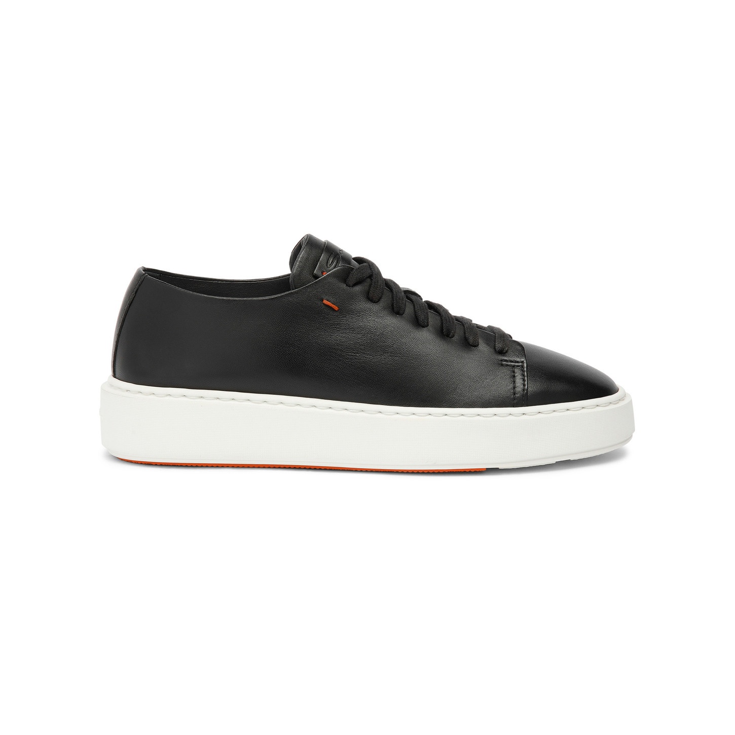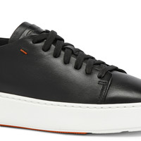 This women's sneaker combines a classic tennis silhouette with the artisanal savoir-faire and sophisticated aesthetic that is deeply engrained in Santoni’s DNA. Crafted from soft and luxurious nappa leather, this shoe is characterised by a wide fit with a round toe and flexible cupsole, providing superior comfort from morning to night. Product details Product ID: WBCD60994BARTESSN01 - Women’s low-top sneaker - Crafted from nappa leather - Colour: black - Wide fit and round toe - Lace-up fastening - Rubber cupsole - Printed Santoni logo on the insole - Made in Italy