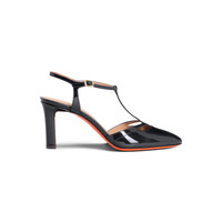 The Mary Jane is a women’s wardrobe icon, reinterpreted by Santoni through a fresh artisanal lens. This iteration reimagines the quintessential round-toe silhouette with delicate cut-outs and the radiant allure of patent leather. A robust block heel and adjustable strap make it both comfy and versatile, while our signature Arancio Santoni sole illuminates every stride with a vibrant flash of orange. Product details Product ID: WDGR71783HI2NIGYN01 - Crafted from patent leather - Color: black - Cut-out details - Round toe - Adjustable ankle strap closure - 7.5 cm stiletto heel - Leather sole with rubber insert - Printed Santoni logo on the insole - Made in Le Marche, Italy