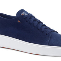 A Santoni icon and a wardrobe must-have. This sneaker showcases meticulous attention to detail, characterised by a luxurious suede upper with delicate orange stitches. Its wide fit promises maximum comfort, whilst its contrast chunky rubber cupsole adds a bold graphic touch to any look. Product details Product ID: WBCD60994BARTVLFU57 - Women's low-top sneaker - Crafted from suede - Colour: blue - Wide fit and round toe - Lace-up fastening - Rubber cupsole - Printed Santoni logo on the insole - Made in Italy