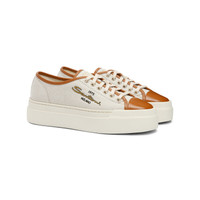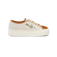 Serving up a classic tennis aesthetic with timeless Santoni heritage, this women's sneaker flaunts a chic design that combines naturally resistant canvas with luxurious leather. Its round toe is reinforced with a leather cap for maximum resistance, whilst a rubber platform sole elongates the silhouette and supports the foot for a self-assured stride. Embellished with a print on the side that pays homage to the year the brand was founded. Product details Product ID: WBGE61241OSSTETNI57 - Women's low-top sneaker - Made from canvas - Colour: beige - Leather details - Contrast logo print - Wide fit and leather toe cap - Lace-up fastening - Rubber platform sole - Printed Santoni logo on the insole - Made in Italy