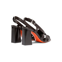 A timeless feminine silhouette, reimagined to pay homage to the artisanal heritage and stunning landscapes of Le Marche. Crafted from nappa leather, this block-heel sandal flaunts wide straps that intersect to form our iconic Beyond weave, inspired by an iconic architectural feature in the Mogliano area. Complete with an adjustable strap that wraps around the back of the foot for a flawless fit. Product details Product ID: WHNQ70808HA3TACGT50 - Women’s sandal - Crafted from nappa leather - Colour: dark brown - Beyond weave - Adjustable strap - Squared off toe - 8.5 cm block heel - Leather sole - Printed Santoni logo on the insole - Made in Italy