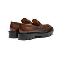 Santoni reinterprets the classic loafer with robust lines and modern proportions. Showcasing the chromatic beauty of our artisanal “velatura” finish, this leather style is enriched with raised stitching to accentuate the line of the toe and a quintessential penny slot in the saddle strap. Styled with a wide footbed and chunky rubber sole for maximum comfort from morning to night. Product details Product ID: WUCU59020NERNLGXM40 - Crafted from leather - Treated with Santoni’s “velatura” color-grading technique - Color: brown - Classic saddle strap - Apron stitching - Rounded silhouette with tapered toe - Chunky rubber sole - Printed Santoni logo on the insole - Made in Le Marche, Italy
