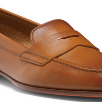 This women’s loafer cements the refined lines of the iconic penny loafer whilst rewriting them with Santoni’s artisanal quality, crafted from luxurious leather and hand-finished with raised apron stitching. Flaunting a sophisticated silhouette with a tapered toe, this shoe is an essential for business outfits and chic city looks. Product details Product ID: WUSF59962HAFSLGAC50 - Women's loafer - Crafted from leather - Colour: light brown - Formal tapered silhouette - Raised apron stitching - Leather sole with half rubber heel - Printed Santoni logo on the insole - Made in Italy