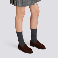 Women’s dark brown suede penny loafer