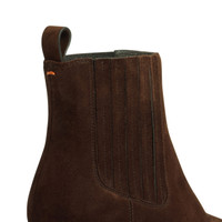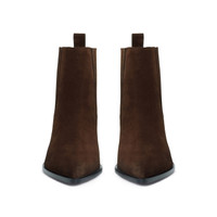 Enduring and essential, this ankle boot takes the iconic cowboy silhouette and imbues it with the refined elegance of Santoni. Crafted from exceptionally soft and supple suede, its sleek lines sit close to the ankle before flowing sinuously into a tapered toe, fitted with concealed elasticated inserts and a block heel. A bold yet refined addition to endless outfits, from maxi dresses to jeans and everything in between. Product details Product ID: WTOU71799BJ2NAEAS26 - Crafted from suede - Color: dark brown - Cowboy silhouette with tapered toe - Elasticated side inserts - Pull tab - 4.5 cm block heel - Leather sole with rubber insert - Printed Santoni logo on the insole - Made in Le Marche, Italy