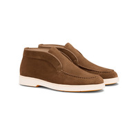 Elevated with exquisite materials and artisanal finesse, this Santoni desert boot brings chic elegance to off-duty ensembles and informal urban looks. Crafted from suede that feels impeccably soft to the touch, it’s characterised by a flexible construction with a rubber sole and a flash of our iconic Arancio Santoni on the tread. Product details Product ID: WUYA58458TISNPYLM31 - Crafted from suede - Color: light brown - Apron stitching - Smooth rubber sole - Arancio Santoni orange tread - Printed Santoni logo on the insole - Made in Le Marche, Italy