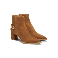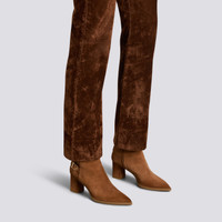 Refined on the eye and versatile at heart, this ankle boot brings Santoni’s artisanal finesse to the everyday. Crafted from exceptionally soft and supple suede, its silhouette is sleek yet easy to wear, featuring a tapered toe and a robust block heel. A decorative strap on the back recalls the Maison’s signature double buckle, lifted from our formal edit and transformed into an emblem of glamorous style. Product details Product ID: WTEZ71846PC4NAEAM40 - Crafted from suede - Color: light brown - Back decorative buckle - Tapered toe - Inner side zip - 6.5 cm block heel - Rubber sole with double buckle pattern - Printed Santoni logo on the insole - Made in Le Marche, Italy