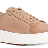 Crafted from soft, supple suede, this women’s sneaker combines artisanal finesse with modern practicality. Bringing a sophisticated touch to casual outfits, it features a leather logo patch on the tongue and a chunky rubber platform sole that elongates the leg. Complete with a bold detail on the tread in classic Arancio Santoni, recalling the lines of our iconic double buckle. Product details Product ID: WBCD61322BARCTOYE73 - Crafted from suede - Color: natural - Round toe - Lace-up fastening - Unlined - Rubber cupsole - Arancio Santoni orange double-buckle detail on the tread - Made in Le Marche, Italy