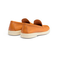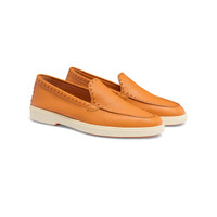 Santoni reinterprets the casual loafer with feminine proportions, fine materials and elegant craftsmanship, bringing charm and prestige to its timeless design. Its refined tumbled leather construction is enriched with hand-stitching in tonal thread. The rubber sole stands out in our iconic Arancio Santoni, revealing a flash of orange with each stride whilst ensuring maximum comfort from morning to night. Product details Product ID: WUYA71436TISSWKAA33 - Crafted from tumbled leather - Color: orange - Embellished with hand-stitching - Apron stitching - Classic silhouette with round toe - Unlined - Smooth rubber sole - Arancio Santoni orange tread - Printed Santoni logo on the insole - Made in Le Marche, Italy