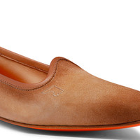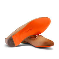 Elevate your everyday wardrobe with this suede loafer, adding a refined update to office-to-evening looks. Its sleek silhouette is accentuated with refined leather trims, featuring a contrast orange sole to mark every stride with signature Santoni allure. Designed with a Goodyear welt construction for a soft, flexible feel. Product details Product ID: WUAY71013SA5SAEAE73 - Women’s loafer - Crafted from suede - Colour: pink - Tonal leather trims - Classic tapered silhouette - Goodyear welt construction - Leather sole with half rubber heel - Printed Santoni logo on the insole - Made in Italy