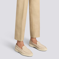 Santoni reinterprets the casual loafer with feminine proportions, fine materials and elegant craftsmanship, bringing charm and prestige to its timeless design. Its refined tumbled leather construction is enriched with hand-stitching in tonal thread. The rubber sole stands out in our iconic Arancio Santoni, revealing a flash of orange with each stride whilst ensuring maximum comfort from morning to night. Product details Product ID: WUYA71436TISSWKAP10 - Crafted from tumbled leather - Color: nude - Embellished with hand-stitching - Apron stitching - Classic silhouette with round toe - Unlined - Smooth rubber sole - Arancio Santoni orange tread - Printed Santoni logo on the insole - Made in Le Marche, Italy
