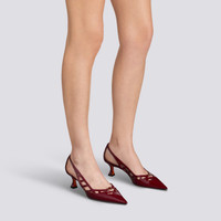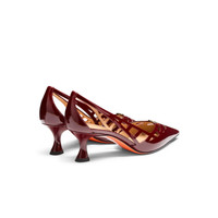 Audacious lines and artisanal sophistication make this patent leather pump with ethereal openwork detailing a cut above the rest. Its elegant silhouette with tapered toe and spool heel elongates the leg while harmoniously moulding to your every stride. A delicate metal buckle embellishment cements Santoni’s passion for reinterpreting heritage codes through a modern lens. Product details Product ID: WDIS71775HI2NVHDR60 - Crafted from patent leather - Color: red - Openwork detailing - Small decorative metal buckle - Tapered toe - 5.5 cm spool heel - Leather sole - Printed Santoni logo on the insole - Made in Le Marche, Italy