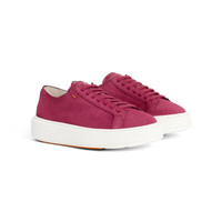 Crafted from soft, supple suede, this women’s sneaker combines artisanal finesse with modern practicality. Bringing a sophisticated touch to casual outfits, it features a leather logo patch on the tongue and a chunky rubber platform sole that elongates the leg. Complete with a bold detail on the tread in classic Arancio Santoni, recalling the lines of our iconic double buckle. Product details Product ID: WBCD61322BARCTOYR72 - Crafted from suede - Color: red - Round toe - Lace-up fastening - Unlined - Rubber cupsole - Arancio Santoni orange double-buckle detail on the tread - Made in Le Marche, Italy