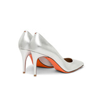 This radiant metallic leather pump brings Santoni’s glamorous side to the most exclusive of occasions, featuring a sleek design with a tapered toe and leg-lengthening stiletto heel. Complete with our signature Arancio Santoni sole for an iconic flash of orange with every stride. Product details Product ID: WDID70945HI2NLLXD50 - Crafted from metallic leather - Color: silver - Classic silhouette with tapered toe - 8.5 cm stiletto heel - Leather sole with rubber insert - Printed Santoni logo on the insole - Made in Le Marche, Italy