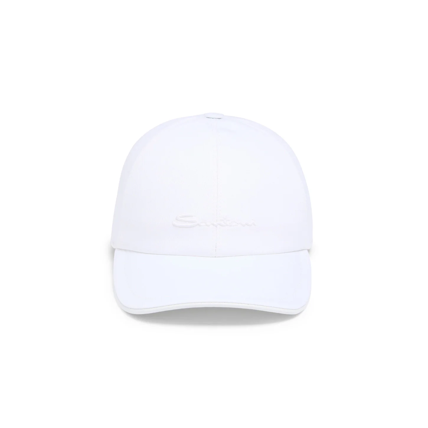 Casual attitude meets Santoni heritage to bring impeccable elegance to the everyday. This baseball cap is crafted from refined cotton and features an adjustable strap on the back for a flawless fit. An embroidered logo on the front and bright inner stitching in Arancio Santoni enrich the look with the enduring allure of the Maison’s signature style codes. Product details Product ID: AWCPC0026XXXBYHI50 - Crafted from cotton - Color: white - Adjustable velcro strap with leather detailing - Front embroidered Santoni logo - Decorative inner Arancio Santoni stitching - Made in Le Marche, Italy