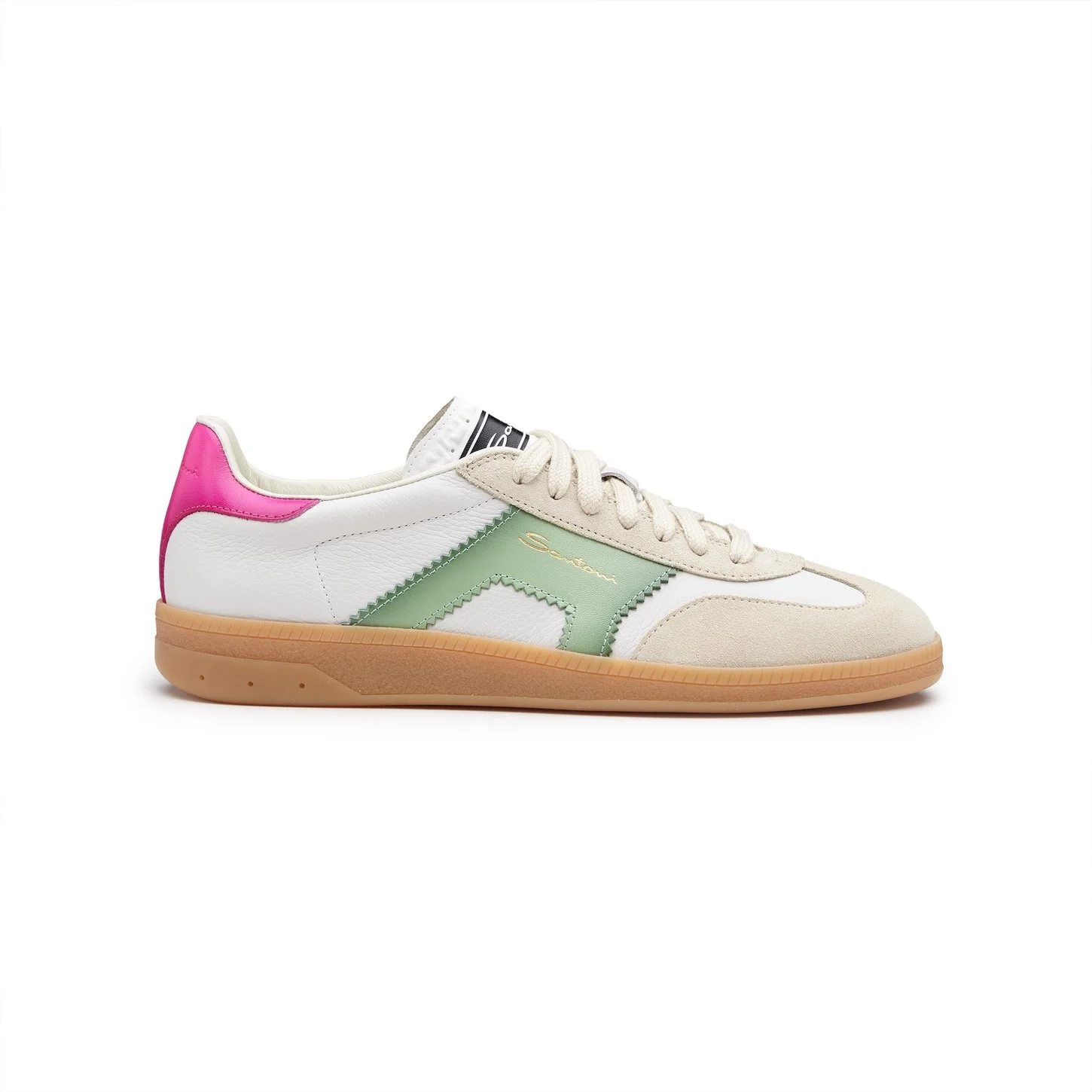 The DBS Oly sneaker is an authentic expression of Santoni’s DNA. This style reimagines the classic ‘70s tennis shoe, updating its retro aesthetic with modern functionality and refined materials. Santoni’s signature double-buckle detail — showcasing the chromatic depth of the Maison’s Velatura finish — enriches the sides of its leather and suede silhouette, borrowed from our formal footwear edit and transformed into an emblem of modern style. Product details Product ID: WBPL61221FARCYOLI80 - Crafted from leather and suede - Color: Puro White - Leather double-buckle inspired detail with Velatura finish - Lace-up fastening - Contrast rubber cupsole - Santoni lettering molded into the tread - Made in Italy