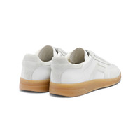 An understated silhouette and a throwback to classic '70s tennis shoes: meet the women’s DBS Oly. Crafted from leather, this lightweight sneaker is elevated with tonal suede details for a refined, easy-to-wear monochrome look. The distinctive side detail is inspired by one of Santoni's signature codes - the double buckle - lifted from our formal shoe edit and transformed into a mark of modern style. A slim natural-toned rubber sole completes the design and accentuates its retro charm. Product details Product ID: WBPL61244FARSLYAI50 - Women's low-top sneaker - Crafted from leather and suede - Color: white - Subtle double-buckle detailing on the tongue - Double-buckle-inspired suede side detail - Lace-up fastening - Natural-tone rubber sole - Santoni lettering moulded into the tread - Made in Italy
