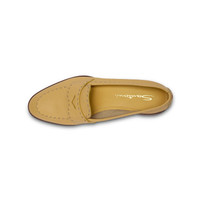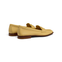 The iconic lines of the penny loafer are rewritten to marry exceptional craftsmanship with modern comfort. Made from tumbled leather, this ultra-lightweight iteration enriches the timeless silhouette with the artisanal charm of delicate hand-stitching. Styled with a sophisticated tapered shape for a versatile look that takes you seamlessly from desk to drinks. Product details Product ID: WUSF71437HAFSWKAL27 - Crafted from tumbled leather - Color: yellow - Embellished with hand-stitching - Saddle strap - Hand-stitched apron - Classic silhouette with tapered toe - Leather sole with half rubber heel - Printed Santoni logo on the insole - Made in Le Marche, Italy