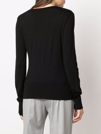 crew neck knitted jumper jet-black wool crew neck long sleeves ribbed hem fine knit Made in Italy Composition Wool 100% SIZE & FIT Model measurements Height 5 ft 10 in(1.78 m) Bust/Chest 33.07 in(84 cm) Hips 35.82 in(91 cm) Waist 26.96 in(68.5 cm) FittingInformation This piece fits true to size. We recommend you get your regular size Cut for a relaxed fit Made with a mid-weight fabric