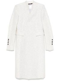 sequined coat Highlights - White - Tweed - Sequin embellishment - Double-breasted button fastening - No lapels - V-neck - Shoulder pads - Long sleeves - Buttoned cuffs - Lurex detailing - Dart detailing - Two front flap pockets - Central rear vent - Full lining - Straight hem - Mid-length - When buying this unisex item, keep in mind that it is graded in standard men's sizing. Made in Italy Composition Outer: Cotton 40%, Polyester 25%, Linen/Flax 25%, Fabric 10% Lining: Cupro 100%