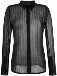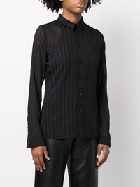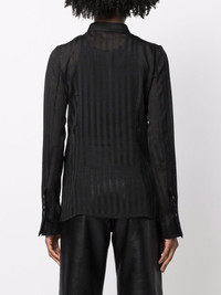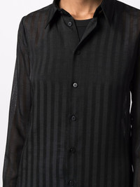 striped long-sleeve shirt semi-sheer construction vertical stripe pattern classic collar front button fastening long sleeves buttoned cuffs straight hem Made in Italy Composition Polyester 100% SIZE & FIT Model measurements Height 5 ft 10 in(1.79 m) Bust/Chest 33.07 in(84 cm) Hips 35.03 in(89 cm) Waist 24.4 in(62 cm) FittingInformation This piece fits true to size. We recommend you get your regular size Cut for a loose fit Made with a mid-weight non-stretch fabric