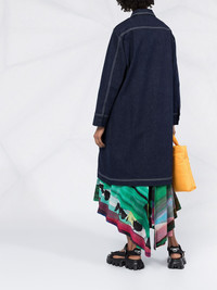 single-breasted denim coat Highlights - Blue - Cotton denim - Contrast stitching - Classic collar - Front button fastening - Two side slit pockets - Long sleeves - Buttoned cuffs - Mid-length - Straight hem Imported Composition Cotton 100% SIZE & FIT Model measurements Height 5 ft 10 in(1.77 m) Bust/Chest 33.46 in(85 cm) Hips 35.03 in(89 cm) Waist 24.01 in(61 cm) FittingInformation This piece fits true to size. We recommend you get your regular size Cut for a loose fit Made with a mid-weight fabric Washing instructions Machine Wash