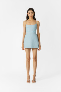 Andi is a tweed mini dress with a fitted, fully boned corset top featuring intricate Chinese button detailing along the front bodice and rope straps over the shoulders. Flowing into a flirty A-line silhouette, Andi infuses retro charm with a modern edge. SIZE & FIT • Fits true to size, take your normal size • Designed for a close fit • Fully lined • Non-stretch fabric • Corset with boned bodice • Length (shoulder to hem): size 00 to size 0 - 21.9", size 2 - 22.6", size 4 - 23.0", size 6 - 23.4", size 8 - 23.8", size 10 to 14 - 24.2" • Model's measurements: height 5'9" bust 31.5" waist 23" hips 35" • Model is wearing size 2 MATERIAL & CARE • Shell - 100% Polyester • Lining - 97% Polyester, 3% Spandex • Garment Care: Hand wash separately or dry clean
