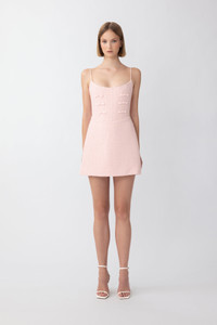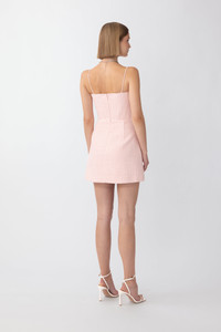 Tweed mini dress with a fully boned corset top featuring our hand-tied pipa knot button detail SIZE & FIT • Fits true to size, take your normal size • Designed for a slim fit • Fully lined • Non-stretch fabric • Length (bust to hem): size 00 to size 0 - 22.2", size 2 - 23.0", size 4 - 23.4", size 6 - 23.8", size 8 - 24.2", size 10 to size 14 - 24.6" • Model's measurements: height 5'10"" bust 33"" waist 24"" hips 35"" • Model is wearing size 2 MATERIAL & CARE • Shell - 30% Wool, 67% Polyester, 1% Lurex • Lining - 97% Polyester, 3% Spandex • Garment Care: Hand wash separately or dry clean