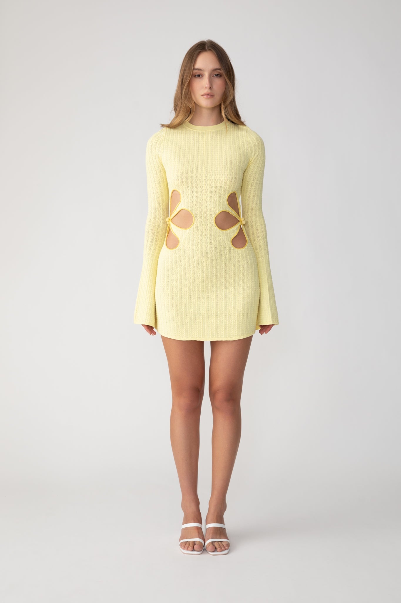 Dallas is a soft crochet knitted mini dress that hugs the figure at the hips into an A-line flare at the hem. Light-weight, comfortable, only subtly sheer, this looks proclaims fun and flirty featuring our signature laser-cut flower motif with bell sleeves. The perfect summer piece over over a bikini or dressing effortlessly chic for occasions all day. SIZE & FIT • Fits true to size, take your normal size • Designed for a close fit • Unlined • Stretch fabric • Laser cut flower on waist • Model is wearing size 2 • Bump friendly - select one size up from your usual size MATERIAL & CARE • Shell - 100% Viscose • Garment Care: Hand wash separately or dry clean