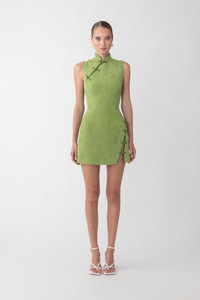 Tweed Cheongsam mini dress with piping along the collar and seam featuring our signature hand-tied pipa knot detail SIZE & FIT • Fits true to size, take your normal size • Fully lined • Non-stretch fabric • Length (collar to hem): size 00 to size 0 - 31.5, size 2 - 32.3", size 4 - 32.7", size 6 - 33.1", size 8 to size 14 - 33.5" • Model's measurements: height 5'9" bust 32" waist 25" hips 35" • Model is wearing size 2 MATERIAL & CARE • Shell - 100% Polyester • Lining - 100% Polyester • Garment Care: Hand wash separately or dry clean