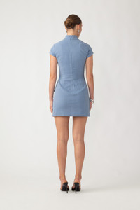 The Isa Denim Dress is a soft denim mini cheongsam, finished with signature hand-tied pipa knots—perfect for daytime and outdoor occasions. SIZE & FIT • Fits true to size, take your normal size • Fully lined • Length (collar to hem): size 00 to size 0 - 30.7", size 2 - 31.5", size 4 - 31.9", size 6 - 32.3", size 8 - 32.7", size 10 to size 14 - 33.1" • Model's measurements: height 5'9" bust 32.5" waist 23.5" hips 35" • Model is wearing size 2 MATERIAL & CARE • Shell - 75% Cotton, 23% Polyester, 2% Spandex • Lining - 100% Rayon • Garment Care: Hand wash separately or dry clean