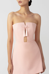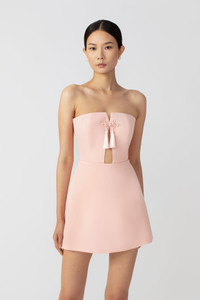 Isla is a playful yet sophisticated A-line mini dress made of comfortably flattering crepe. The bust is uniquely structured with internal boning featuring a playful keyhole front cut-out and button tassels. SIZE & FIT • Fits true to size, take your normal size • Designed for a slim fit • Fully lined • Non-stretch fabric • Length (bust to hem): size 00 to size 0 - 22.6", size 2 - 23.4", size 4 - 23.8", size 6 - 24.2", size 8 to size 14 - 24.6" • Model's measurements: height 5'9" bust 32" waist 25" hips 35" • Model is wearing size 2 MATERIAL & CARE • Shell - 100% Polyester • Lining - 97% Polyester, 3% Spandex • Garment Care: Hand wash separately or dry clean