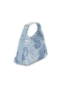 - Soft wash denim exterior with leather trim and textile lining - Imported - Top zipper closure - One main compartment - Integrated leather handle - Embellished with playful floral pattern made with embroidery and sequins - Measures approx 8.27" W x 4.72" H x 2.95" D Top handle with a 6.96" drop - Revolve Style No. SLEE-WY8 - Manufacturer Style No. SLBA16