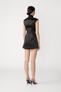 The Leah Dress is a satin party mini featuring a cropped collar with slightly capped shoulders and a moderately flared skirt that create a modern, sophisticated silhouette. A velvet trimmed plunging bust finished with a mini velvet bow adds a sensual touch for the most elegant occasions. MATERIAL & CARE • Shell - 95% Polyester, 5% Spandex • Lining - 97% Polyester, 3% Spandex • Garment Care: Hand wash separately or dry clean