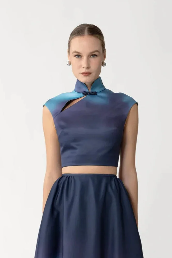 The Mai Top is a cropped satin piece defined by its mandarin collar and hand-tied pipa knot at the neckline. Designed to pair seamlessly with the matching Mai Skirt. SIZE & FIT • Fits true to size, take your normal size • Fully lined • Length (collar to hem): size 00 - 14.6", size 0 - 14.8", size 2 - 15.0", size 4 - 15.2", size 6 - 15.4", size 8 - 15.6", size 10 - 15.7", size 12 - 15.9", size 14 - 16.1" • Model's measurements: height 5'9" bust 32.5" waist 23.5" hips 35" • Model is wearing size 2 MATERIAL & CARE • Shell - 100% Polyester • Lining - 97% Polyester, 3% Spandex • Garment Care: Hand wash separately or dry clean
