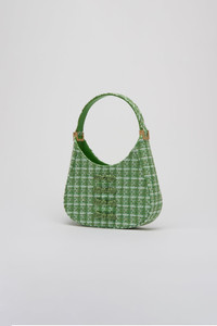 The mini sau tweed is the perfect addition to your Spring looks. Featuring its signature curved silhouette with emblematic hand-tied pipa knot buttons, this versatile bag is designed in stylish pastel hues that are ideal for the modern city girl. SIZE & FIT • Handle length: 9.84" • Height: 5.12" • Width: 8.46" • Depth: 2" • Comes with dust bag MATERIAL & CARE • Outer: Tweed • Buckles: 100% zinc alloy • Lining: 100% leather and satin
