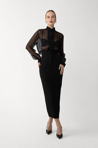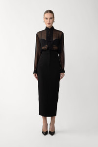 The Niki Skirt is a pencil silhouette in crepe that hugs the body and falls to a clean, streamlined hem. A back slit ensures ease of movement, perfect for everyday styling. SIZE & FIT • Fits true to size, take your normal size • Fully lined • Length (waist to hem): size 00 to size 0 - 37.1", size 2 - 37.9", size 4 - 38.3", size 6 - 38.7", size 8 to size 14 - 39.1" • Model's measurements: height 5'9" bust 32.5" waist 23.5" hips 35" • Model is wearing size 2 MATERIAL & CARE • Shell - 100% Polyester • Lining - 97% Polyester, 3% Spandex • Garment Care: Hand wash separately or dry clean