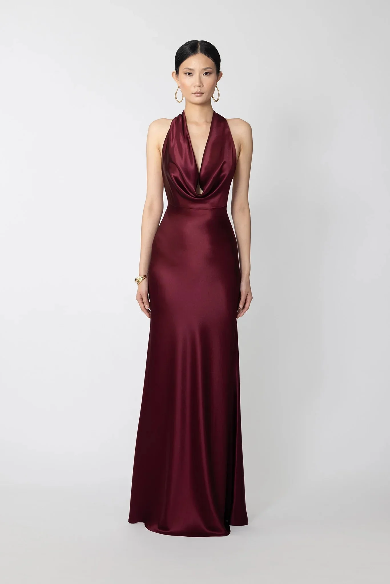 Pearl is a satin spectacle as a gown fit to flatter with its low-back bias-cut silhouette showing off a sensual plunging cowl neck as well as our signature wings for dramatic flare and an all around stunning sensation. SIZE & FIT • Fits true to size, take your normal size • Designed for a slim fit • Unlined • Non-stretch fabric • Length (collar to hem): size 00 to, size 0 - 42.7", size 2 to size 14 - 44.7" • Model's measurements: height 5'9" bust 32" waist 25" hips 36" • Model is wearing size 2 MATERIAL & CARE • Shell - 75% Acetate, 25% Polyester • Lining - 97% Polyester, 3% Spandex • Garment Care: Hand wash separately or dry clean