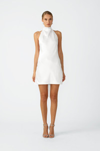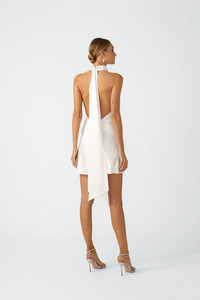 Penny is one of our signature styles that holds a special place in every woman's wardrobe. A bias-cut satin mini dress featuring a high neck, a low-cut back that dips below the waist with open sides, and dramatic wings that can also be worn as a bow at the back of the neck. SIZE & FIT • Fits true to size, take your normal size • Designed for a slim fit • Unlined • Non-stretch fabric • Halter neck with buttons at the back of the neck MATERIAL & CARE • Shell - 53% Viscose, 47% Rayon • Garment Care: Hand was separately or dry cleaning