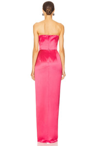 - Shell: 78% acetate 22% polyester Lining: 97% polyester 3% spandex - Made in China - Hand wash - Fully lined - Hidden back zipper closure - Boned bodice - Satin fabric with subtle ruching and high seam split - Revolve Style No. SLEE-WD196 - Manufacturer Style No. S23D04