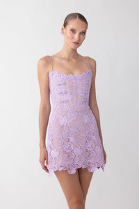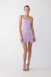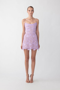 Lace mini dress with thin straps and fully boned corset top featuring our signature hand-tied pipa knot button detail SIZE & FIT • Fits true to size, take your normal size • Fully lined • Non-stretch fabric • Length (bust to hem): size 00 to size 0 - 23.8", size 2 - 24.6", size 4 - 25.0", size 6 - 25.4", size 8 - 25.8", size 10 to size 14 - 26.2" • Model's measurements: height 5'9" bust 32" waist 25" hips 36" • Model is wearing size 2 MATERIAL & CARE • Shell - 100% Polyester • Lining - 100% Polyester • Garment Care: Hand wash separately or dry clean