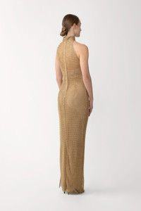 The Santana Dress is a floor-length gown embellished with crystals. Featuring a cheongsam-inspired silhouette with a mandarin collar and hand-tied pipa knots along the side. Comes with a matching slip. SIZE & FIT • Fits true to size, take your normal size • Comes with removable slip • Non-stretch fabric • Length (collar to hem): size 00 to size 0 - 55.1", size 2 to size 14 - 57.1" • Model's measurements: height 5'10" bust 31.5" waist 23" hips 35" • Model is wearing size 2 MATERIAL & CARE • Shell - 94% Polyester, 6% Spandex • Lining - 100% Polyester • Garment Care: Hand wash separately or dry clean