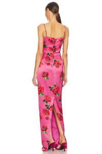 - Shell 75% acetate 25% polyester - Made in China - Hand wash cold - Double lined - Hidden back zipper closure - Contour bust - Thick sateen fabric with back vent - Sau Lee's Sofia Dress is a sleek column dress in a romantic rose print - Style it with heels and a clutch for a minimal yet elegant look. - Revolve Style No. SLEE-WD192 - Manufacturer Style No. S23D12