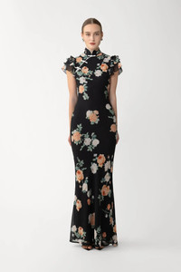 Cut for a flattering shape from flowing chiffon, the Stella Dress features a mandarin collar, contrast piping, and hand-tied pipa knots - completed by our original peach and ivory roses print. SIZE & FIT • Fits true to size, take your normal size • Fully lined • Length (collar to hem): size 00 to size 0 - 60.2", size 2 to size 14 - 62.2" • Model's measurements: height 5'10" bust 31.5" waist 23" hips 35" • Model is wearing size 2 MATERIAL & CARE • Shell - 100% Polyester • Lining - 100% Polyester • Garment Care: Hand wash separately or dry clean