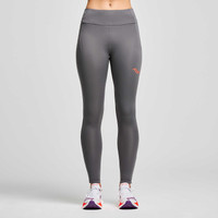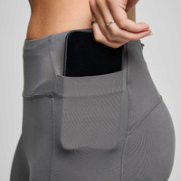 Weightless performance designed for how your body moves. FEATURES & BENEFITS - Best for: Race Day - High-rise - Fitted - 26" Inseam - Recycled polyester/elastane blend interlock stays put and won’t weigh you down - Comfort waistband at front lays flat and won’t dig in - Two pockets at outside hip store essentials for warm up and cool down - Invisible zipper finishes the back pocket - Internal drawcord at waistband lays flat when not in use - Gusset is double layered - Zippers at hem for easy on/off before or after the race - Saucony logos