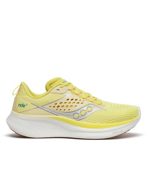 Screen time is creeping more and more into all of our run time. So we decided to do something about it. The Ride 17 is a full transformation from the ground up, creating an all-natural dopamine hit that encourages you to move your feet more than your feed. It features a completely redesigned cushioning system for extra comfort and energy return. Making it a truly versatile shoe, from warm up to uptempo runs. Set your phone to DND and enjoy. Made for Daily Movement SUPPORT: Neutral CUSHIONING: PWRRUN+ WEIGHT: Men: 9.9oz (282g) Women: 8.4oz (238g) OFFSET: 8mm (35/27mm) Highlights - PWRRUN+ foam - our softest-feeling foam that's unbelievably plush and springy - Increased outsole coverage - greater protection and durability - Enhanced fit - taking your feedback from Ride 16, we focused on comfort-first performance - Engineered mesh upper - extra breathable and comfortable FEATURES & BENEFITS - Upgraded Cushioning: our advanced PWRRUN+ foam provides supreme, lightweight cushioning you crave for all-day comfort - More Rebound: Experience that pep in your step and feel reenergized for a longer run or full day on your feet - Extra breathability from our newly engineered mesh so your feet can stay comfortable, longer - 360-degree adaptive fit designed to move with you - Best For: Daily Run/Workout/Casual Movement - Heel-to-toe Offset: 8mm (35mm heel/ 27mm forefoot) - Weight: Women's 8.4oz (238g) - Sustainability: This style is vegan and contains recycled materials